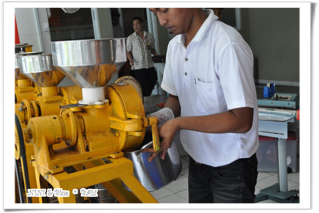 他們用大型機器,磨好之後會再秤重,讓你看清楚沒有減少重量