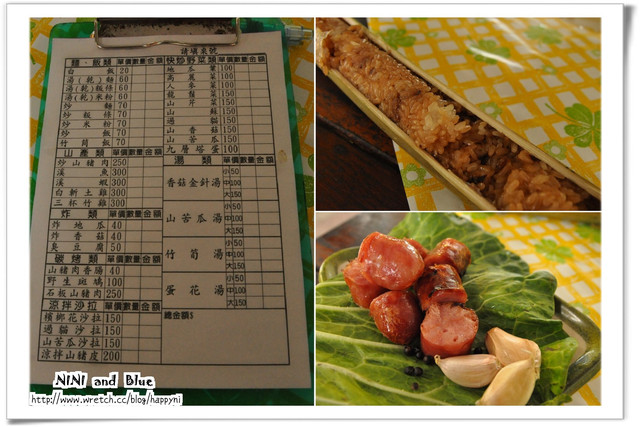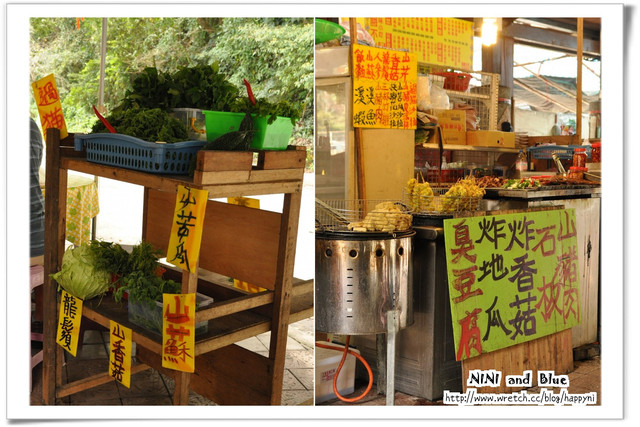 這邊還有現採的野菜和一些山珍(溪蝦、山豬肉)