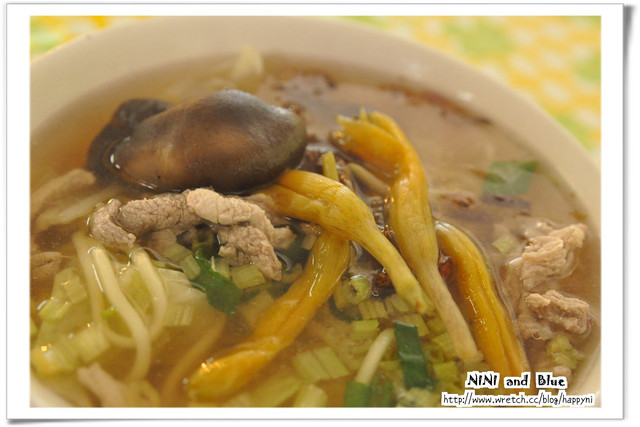 點了竹筒飯、馬告香腸、臭豆腐、湯麵、香菇金針湯